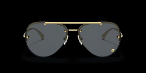 Framing a sophisticated fashion statement, colored crystal or clear metal lampshades illuminate the gaze of an original Versace icon: Medusa.