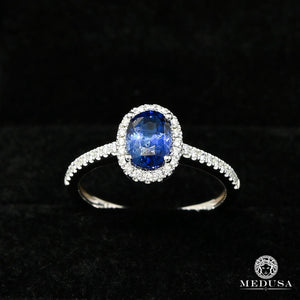 Sapphire Ring with Diamonds in White Gold 14-Karat