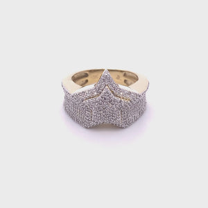 Star-shaped diamond ring. This incredible diamond-studded ring is set on a 10K gold band.