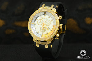 Este reloj Joe Rodeo está decorado con diamantes genuinos de alta calidad y viene con un movimiento cronógrafo SWISS completamente funcional, caja de acero inoxidable y fondo de acero inoxidable grabado y numerado individualmente. Resistente al agua hasta 100 m (330 pies). Este reloj de diamantes está garantizado como 100% nuevo y genuino y vendrá en su empaque de fabricación original con dos bandas adicionales y todos los documentos originales.