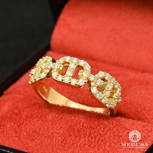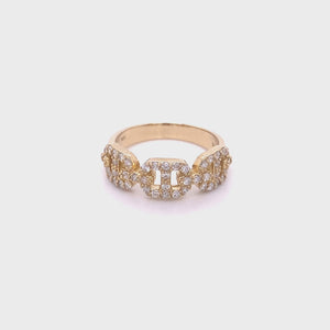 Anillo de diamantes con eslabones cubanos en oro de 14 quilates