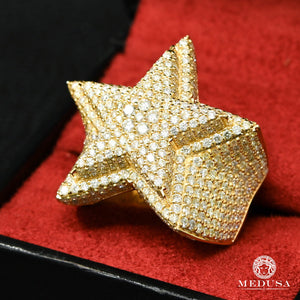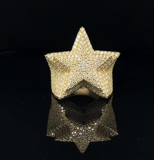Anillo de diamantes en forma de estrella. Este increíble anillo engastado con diamantes está montado sobre un anillo elaborado en oro de 14K.