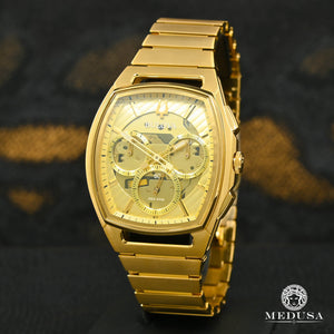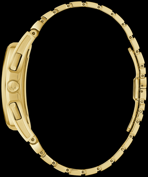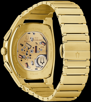 La emoción revolucionaria del primer movimiento cronógrafo curvo del mundo continúa, ya que Bulova reinventa una vez más lo que debería ser un reloj. Un nuevo estuche Curved Tonneau subraya las líneas fluidas de la colección CURV, al tiempo que ofrece una nueva estética distintiva, una vez más, haciendo una declaración de diseño respaldada por la innovación tecnológica. Cuenta con una caja de acero inoxidable en tono dorado con forma de barril y una esfera color champán con un cristal de zafiro curvado y revestimiento antirreflectante. Se combina con un brazalete de acero inoxidable en tono dorado y un cierre desplegable con botón para un diseño sin costuras. Este reloj de lujo para hombre se sentirá tan innovador y único en el futuro como lo es hoy, un accesorio perfecto para cualquier ocasión.