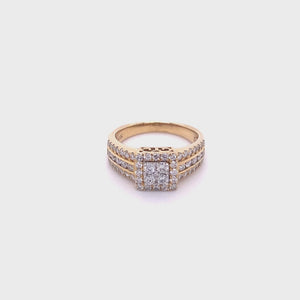 Anillo de diamantes estilo '' cuadrado ''. Este increíble anillo de diamantes está montado en un anillo de oro amarillo de 10K.