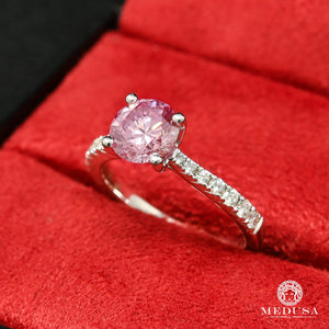 Bague de fiançailles à diamants style ''Solitaire''. Le diamant est la pierre précieuse la plus répandue pour une bague de fiançailles. Il est l’emblème suprême de l’amour car il est symbole de pureté et d’éternité.