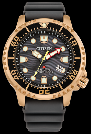 Explorez les profondeurs les plus profondes avec le dernier Promaster Dive dans une nouvelle couleur élégante. Cette montre de plongée incontournable présente un boîtier en acier inoxydable couleur or rose, un cadran gris à 3 aiguilles avec fonction date, ainsi que des aiguilles et marqueurs lumineux. Le bracelet en polyuréthane gris durable avec fermeture à boucle complète le look pour un ajustement confortable. Doté de notre technologie Eco-Drive durable alimentée par n'importe quelle lumière qui n'a jamais besoin de pile, vous porterez cette montre haute performance avec style, des aventures sur terre aux mers d'un bleu profond. Conforme ISO et étanche jusqu'à 200 mètres. Calibre E168.