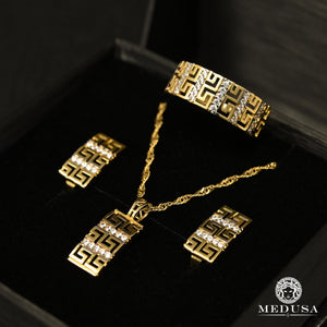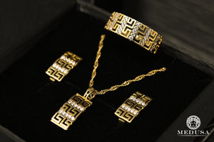 Ensemble chaîne avec pendentif, boucle d'oreilles et bague.