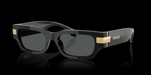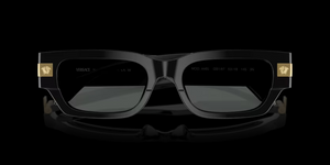 Une version plus étroite de la forme rectangulaire classique, cette monture fait un clin d'œil à la scène de la mode des années 90 avec ses contours épurés et son profil charismatique à dessus plat. Les embellissements emblématiques de Versace allient héritage et style résolument moderne.