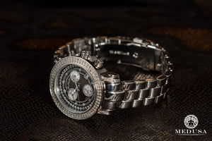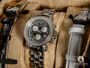 This Joe Rodeo watch is decorated with high-quality genuine diamonds and comes with a fully functional SWISS chronograph movement, a stainless steel case, and an individually numbered and engraved stainless steel back. Water-resistant up to 100m (330ft). This diamond watch is guaranteed 100% brand new and authentic and will be delivered in original manufacturer packaging with two additional bands and all original documents.