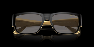 Trendy shapes give way to the captivating brilliance of Medusa. This fully metal square shape makes a very Versace statement in the brand's iconic shades.